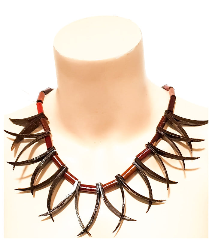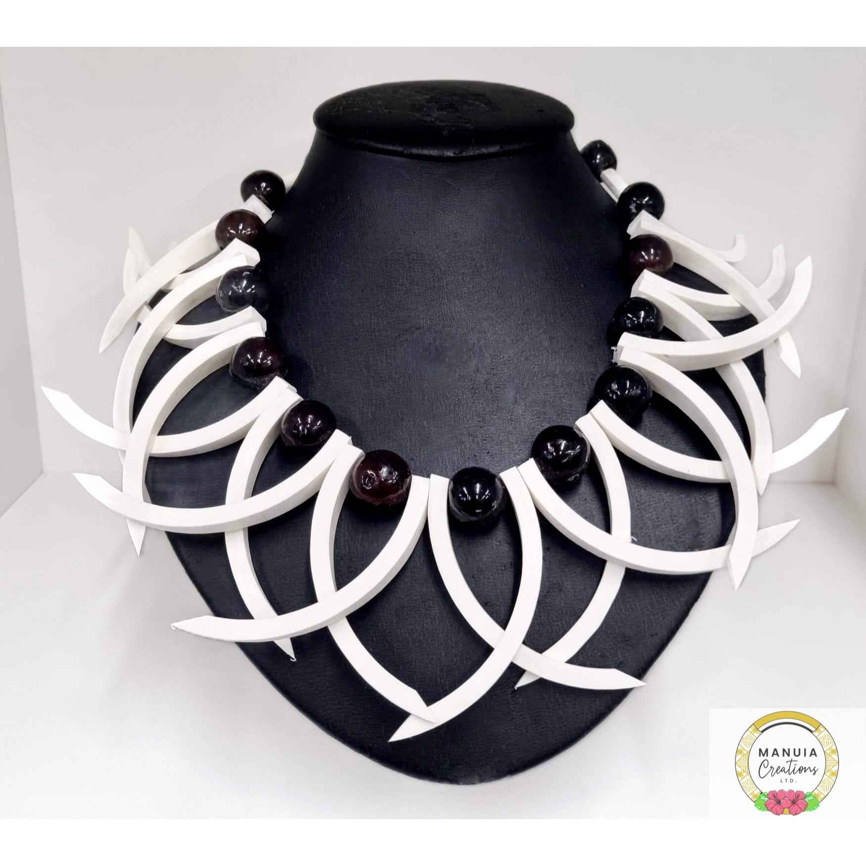 The collection includes three distinct styles: Ula popo (brown), Ula nifo white crossed, and the classic Ula nifo adorned with beads. Each item is handmade using materials such as coconuts, pua, pvc pipe, and beads, all sourced from Samoa.